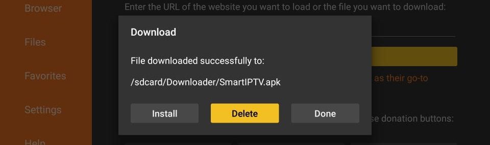 - Downloader app will automatically run the Smart IPTV APK for you