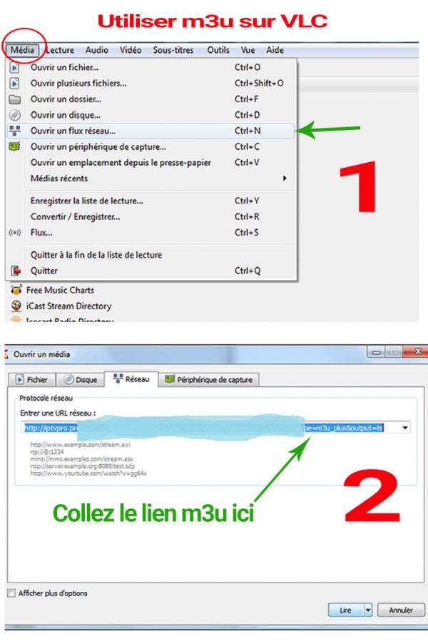 Pour utiliser votre lien m3u d’abonnement iptv sur VLC, c’est très simple : ouvrez VLC puis cliquez sur Media > Open Network Stream, collez l’URL m3u dans la case et cliquez sur le bouton Play.